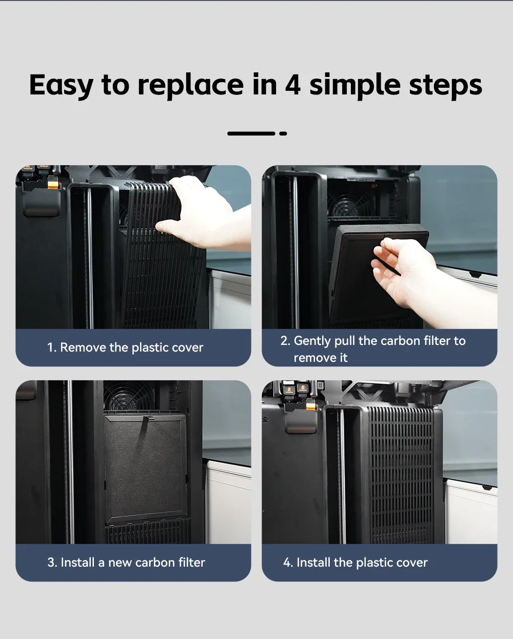 Equipped with a three-fold 6-layer filtration system consisting of G4 pre-filter cotton, HEPA13, and acid-free activated carbon.