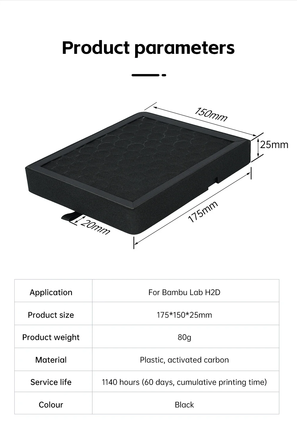 For Bambu H2D HEPA Activated Carbon Combo Air Filte for H2D Series Replacement 3D Printers Parts